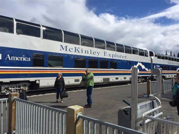 McKinley Explorer is a part of the largest dome railcar fleet in Alaska. It is operated by Princess Cruises and Holland America Line. Ten cars of the McKinley Explorer carry 88 passengers each aboard the train's upper-level dome sections. This offers travelers a fantastic 360-degree view of the wilderness from the rooftop dome windows. Tour guides comment on the scenery between Anchorage and Denali National Park. The whole trip takes eight hours. On the lower level of the train is a restaurant and an outdoor viewing platform.