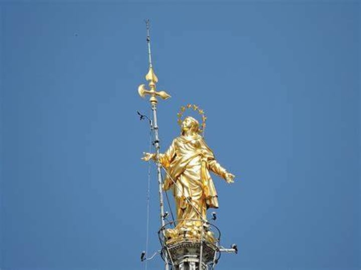 The most impressive of all of its ornaments is a gilded copper statue of the Madonnina or Little Madonna, who is the city’s traditional protector. The statue is perched atop a spire.