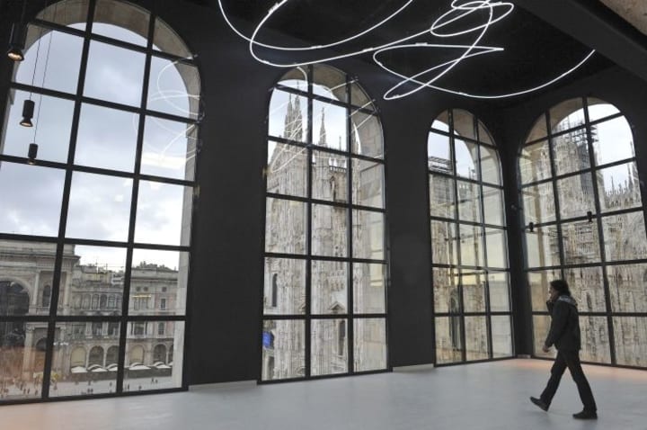 It now is home to the Novecento Museum of 20th-century art. It was built around a futuristic spiral ramp and has a magnificent collection of artworks that include Umberto Boccioni, Campigli de Chirico, and Marinetti. You ascend through various rooms that take you from the powerful neo-Impressionist painting of striking workers “Il Quatro Stato” by Volpedo to the impressive art of futurist greats like Boccioni. Carlo Carra, Gino Severini, and Giacomo Balla, and on to abractionism, surrealism, spatialism, and Arte Povera.