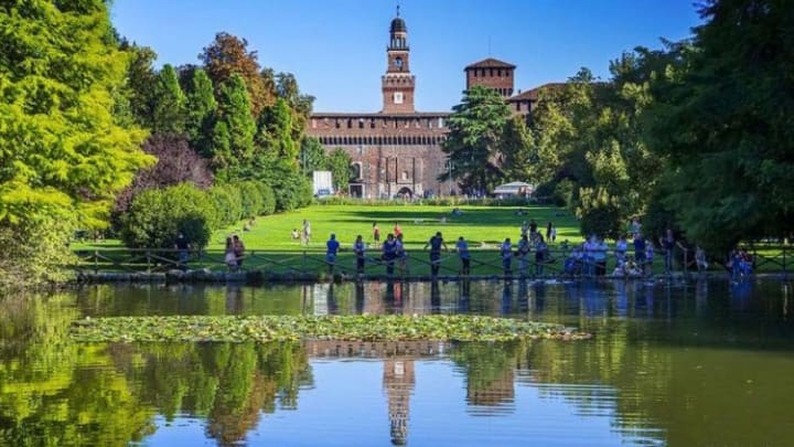 Near Castle Sforzesco you’ll find the beautiful green space of Sempione Park. The park is located right outside of the historic center of Milan. Within the park are some impressive buildings and monuments as well as an over one hundred meters tall tower. The park is nicely landscaped with winding paths, large open grassy areas, tall trees, and a picturesque bridge stretching over a central pond. Many events are held in the park during the spring and summer.