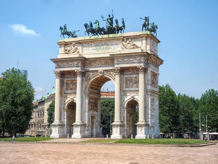 In 1807 Luigi Cagnola designed and built the Arco della Pace or Peace Arch. It was completed in 1838 and inaugurated by King Ferdinand I of Austria.