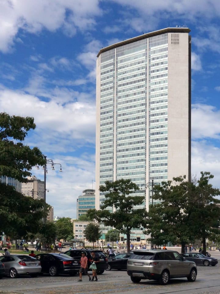 The slender Pirelli Tower was recognized as an international landmark when it was completed in 1959 as the headquarters of Pirelli. The tower is slender and reinforced by concrete walls. The Pirelli Tower rises straight up from a small base to a height of 127 meters. Its form can be found in other skyscrapers such as the Metlife Building in New York City (formerly the PanAm Building).