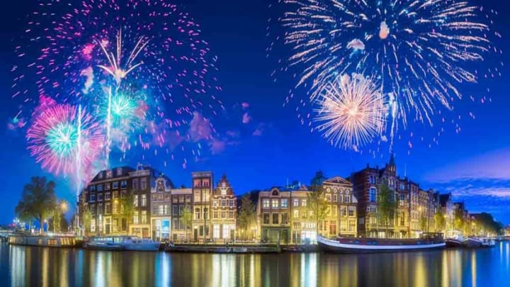 Gleoilegt nytt means Happy New Year in Icelandic. In the capital, Reykjavik, the biggest events on New Year's Eve are held. All over Iceland fireworks are set off and in some places, bonfires are lit. At times food tables are offered to people, and for entertainment, there are shows and musical events.
