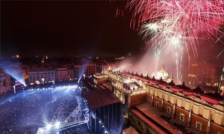Traditionally the Polish people devote each day on the calendar to a saint. On December 31 New Year's Eve that saint is Sylwester or St. Sylvester. In Rynek, the main square in Krakow one of the most notable New Year's Eve celebrations in the country is held. There is live music and fireworks are displayed over St. Mary's Basilica.