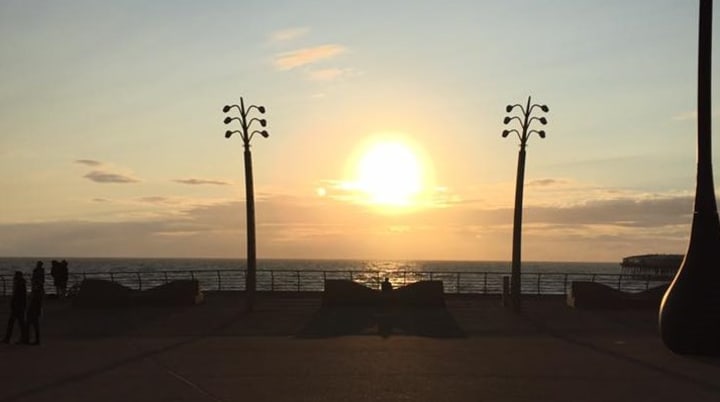 My sister and I raced through the endless grids of terraced housing and pound stores that glowed in the light of the sunset, until we broke through a line of mansion-like hotels that stretched on as far as the eye could see, along the coast. Each one competed with its neighbour to stand out more, brightly painted, fancy balconies, pillars straight from a Greek temple and neon lights that pulsed ‘Vacancies.’