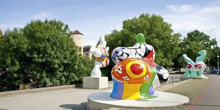 The sculptures Die Nanas helped make French artist Niki de Saint Phalle famous. These are three earth-mama sculptures set by Leine River in 1974. The voluptuous and florescent-colored “Sophie”, “Charlotte” and “Caroline” are now popular and most loved landmarks.
