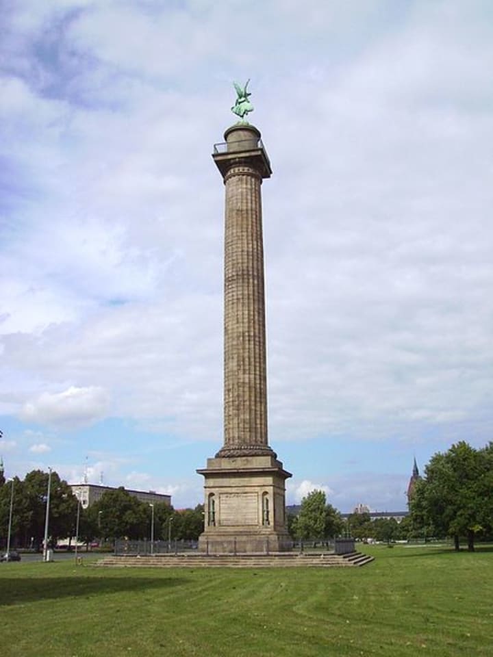 The Waterloo Memorial is a 46.3 meter column that commemorates the victory of German, British and Prussian forces over Napoleon in the Battle of Waterloo in June 1815.
