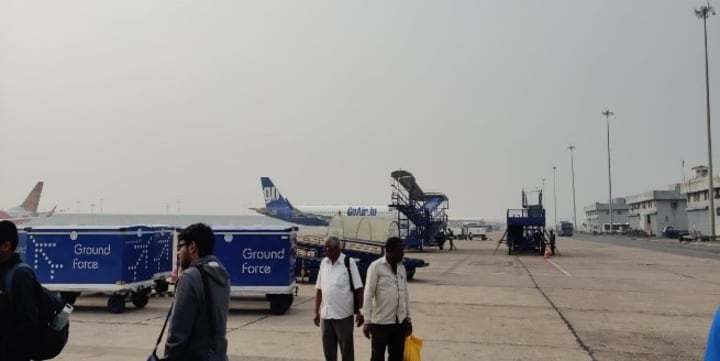I met up with Pratyaksh downstairs near the cab. People looked at us weird, our driver included, because we were carrying huge trekking bags, with heavy leather shoes and 2 to 3 layers of clothing. We got into the cab and waited for Rohit to show up. We called him, and he picked up saying he was leaving his house now. Classic Rohit, always late for everything. Anyway, Rohit made it to the pickup point just in time, and we rushed to the airport. We got our tickets, checked our luggage in, did the security check and waited at the terminal for our flight.