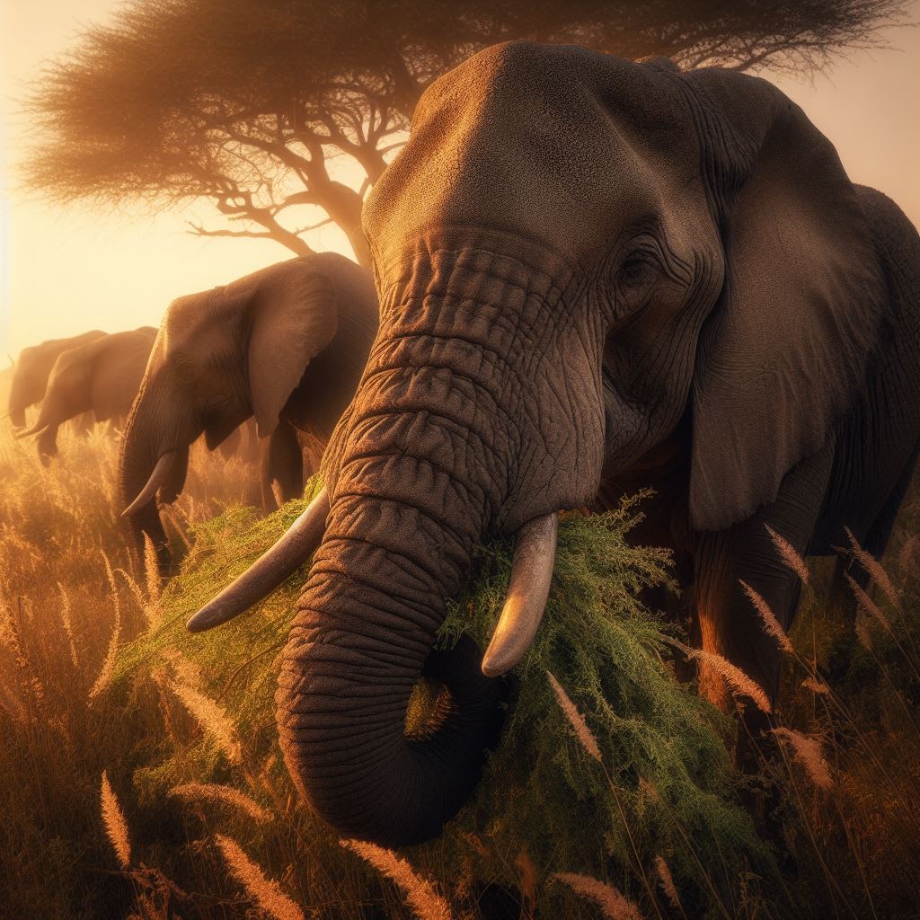 Elephants eat trees: Elephants are herbivores that consume a large amount of plant material every day. They eat the leaves, bark, branches, fruits, and seeds of various tree species, such as acacias, baobabs, marulas, and knobthorns. By eating trees, elephants obtain nutrients, water, and minerals that they need for their survival.