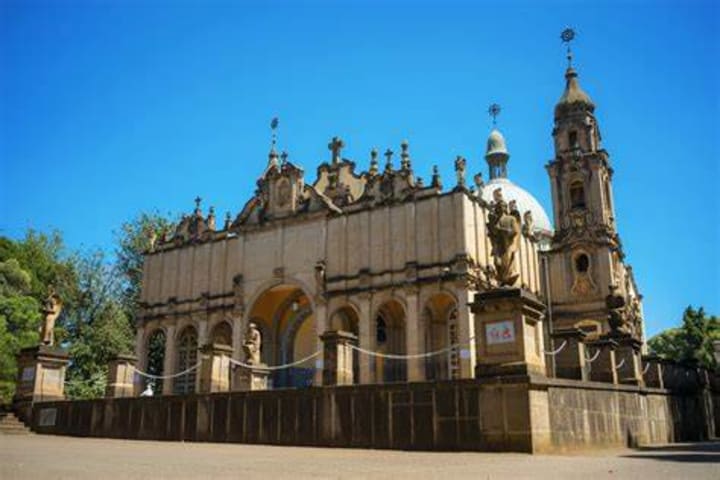 The church was built in the traditional octagonal form in the neo-Classical style and completed in 1911. On the grounds just north of the cathedral is the museum. This museum has the best collection of ecclesiastical paraphernalia in the country outside St. Mary of Zion in Aksum. You can see lovely crowns, crosses, prayer sticks, holy scrolls, ceremonial umbrellas and the coronation outfits of Zewditu and Haile Selassie.