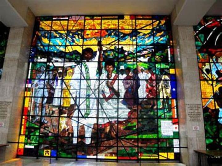 St. George Cathedral & Museum was commissioned by Emperor Menelik II to commemorate his 1896 defeat of the Italians in Adwa. The cathedral is dedicated to St. George, Ethiopia’s patron saint. This is one of Addis Ababa’s most beautiful churches. The exterior is of grey stone with flashes of color and art. Sections of the ceiling glow sky-blue and are gilded with stars. The outer walls are covered in paintings and mosaics by renowned artist Afewerk Tekle.