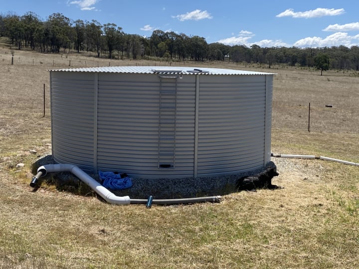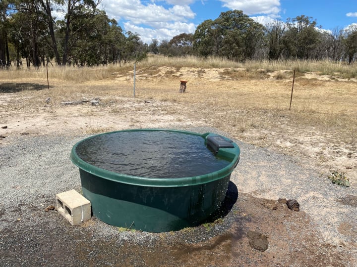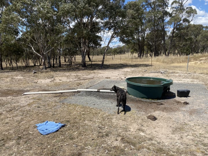 After this super adventure, this time I politely refused George's help and fully equipped with the right gear, meaning smart-phone and good internet connection (which is the most important tool on the farm; at the end Google and YouTube know everything), beach towel and bikini, I made my way to the water trough. On the way we (me and Daisy) encountered our pets, so Daisy being a half-kelpie (a cattle dog) had to 'organize' them and they all hide in the bush.