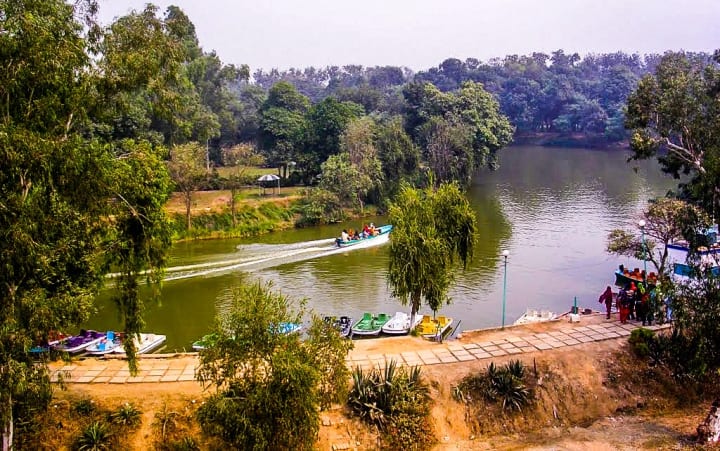 Jallo Wildlife Park was established in 1978. It is a public recreation and wildlife site located in Lahore District, Punjab, Pakistan. It stretches for 461 acres and is one of the three main wildlife parks in Lahore. The other two are Changa Manga and Lahore Zoo Safari. The park has a Forest Research Center, Wildlife Breeding Center, restaurants, coffee shops, a theme park, a sports complex, a swimming pool and a large lake for boating and fishing. Among the bird population are the common pheasant, Indian peafowl and rock pigeon. Among the mammals are the Asian black bear, Bactrian camel, Chital, Chinkara and Sambar. Reptiles include the Indian cobra and the Muggar crocodiles.