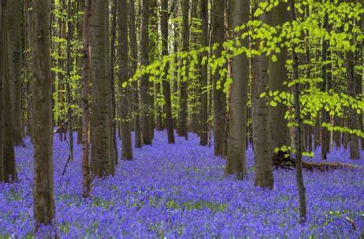 The Hallerbos or Blue Forest is located in Halle, Belgium. In the spring from late April to May the woods have a floral carpet made up of beautiful bluebells. You can walk winding paths to enjoy this beautiful happening. There are deer and rabbits making their home in this forest. You walk upon the bluebell carpet among oak, ash, pine, beech, giant sequoia, and larch trees. The forest also is home to squirrels, foxes and almost 100 different species of birds.