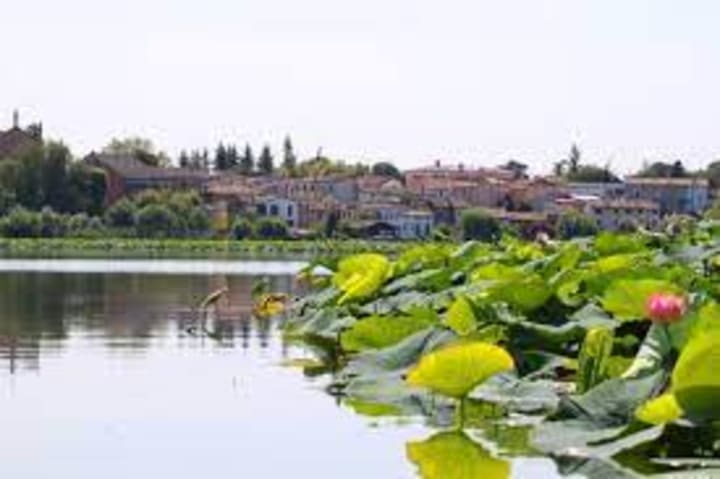 Lotus Island is located on Lake Superior in Mantua, Italy. This is one of the three lakes surrounding Mantua with the largest expanse of lotus flowers found outside of Asia. This floating island is divided by small waterways that let boats cross. The lotus flowers rise up from the water with large leaves and blossoms in pale pink and white. These flowers are native to Asia and were established in Italy in the early 20th century. The best time to enjoy the floating lotus are in July and August.