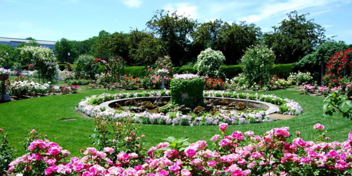 Kelleher Rose Garden in Boston, Massachusetts is open from mid-April through October. The garden dates back to 1931 and has over 1,500 roses. It is an English-style garden