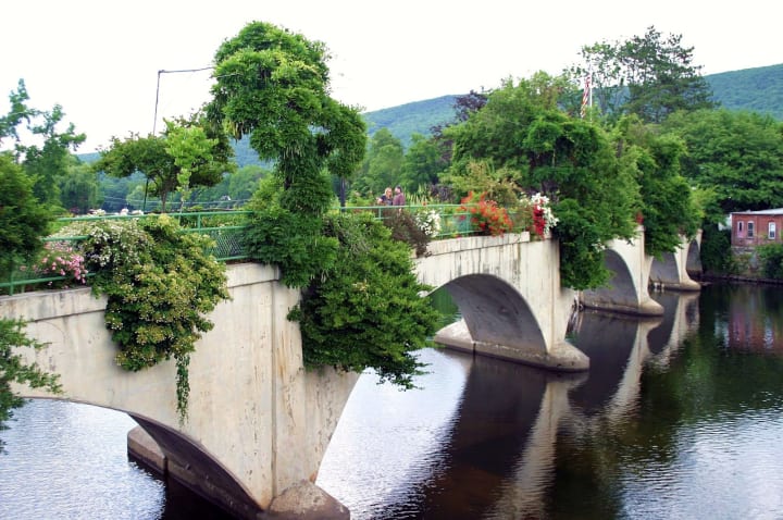 The Bridge of Flowers is located in Shelburne Falls, Massachusetts. It is considered to be “the only one of its kind in the world.” The bridge is 400-feet-long and is covered with flowers that bloom from April to October. There are 500 varieties of flowers, vines, and shrubs. The bridge was built for trolleys in 1908 and when the railway went out of business in 1929 it was reborn as the Bridge of Flowers.