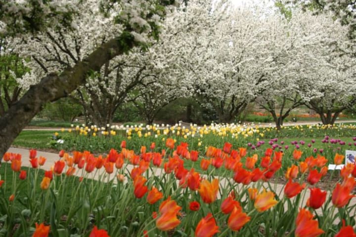 Lilacia Park is a botanical garden outside of Chicago in Lombard, Illinois. The garden has over 300 varieties of lilacs. The collection of flowers belonged to Colonel William Plum and his wife Helen. They moved to the area in 1869. The couple purchased land and planted lilacs. After a trip to the celebrated gardens of Victor Lemoine in France they returned with two lilac cuttings which bloomed and are still a part of today’s collection. There are 1,500 lilac bushes of over 300 varieties in Lilacia Park and can be found in full bloom during April and May.