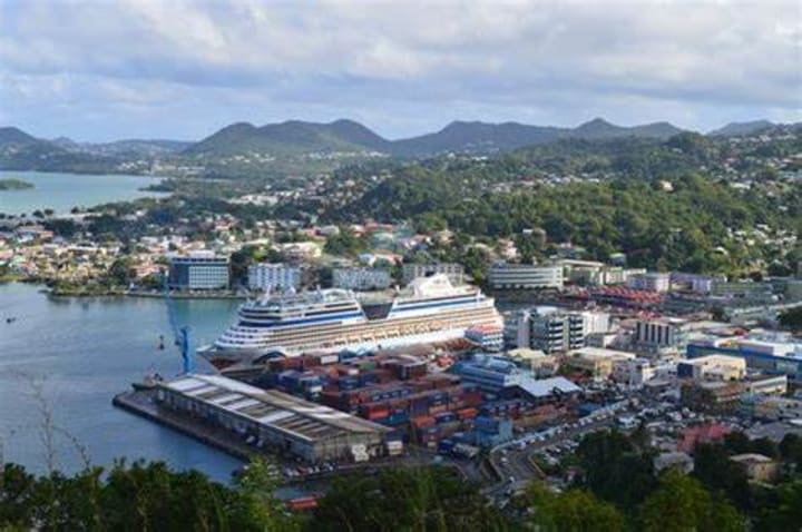 Saint Lucia is an Eastern Caribbean Island nation that has some impressive mountains called the Pitons on the west coast. Its capital, Castries is a popular cruise port.