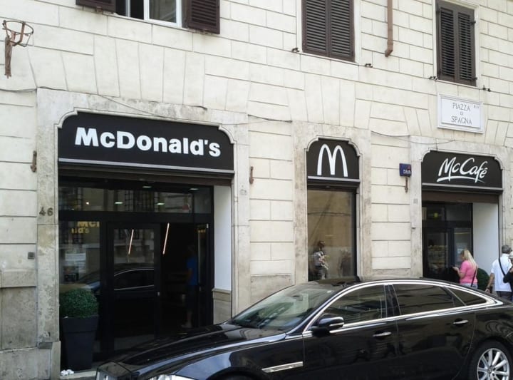 Visiting Italy you might be surprised to find a McDonald’s in Rome. There in the heart of city at the Roma Termini Station are two McDonald’s, one on the ground floor and one on the basement floor. What makes this experience different is that you could have your meal sitting by the ruins of an ancient Roman wall.