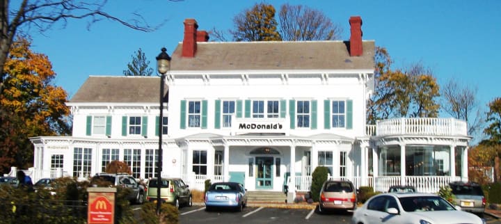 New Hyde Park, New York has a McDonald’s housed in Denton House, an 18th century farmhouse converted into a Georgian-style mansion in the 1860s. In 1985 McDonald’s purchased the property and wanted to demolish the building. Preservationists stopped them and they agreed to restore the house.