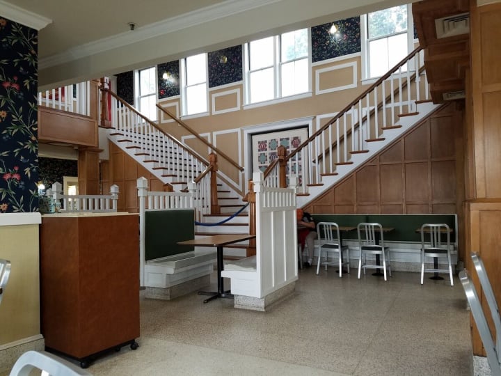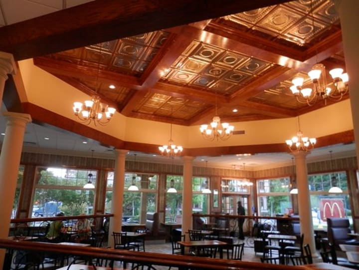 The house is a mix of Greek Revival and Italianate architecture and looks like a posh tavern. It serves McDonald’s meals with style in a fine restaurant dining atmosphere.