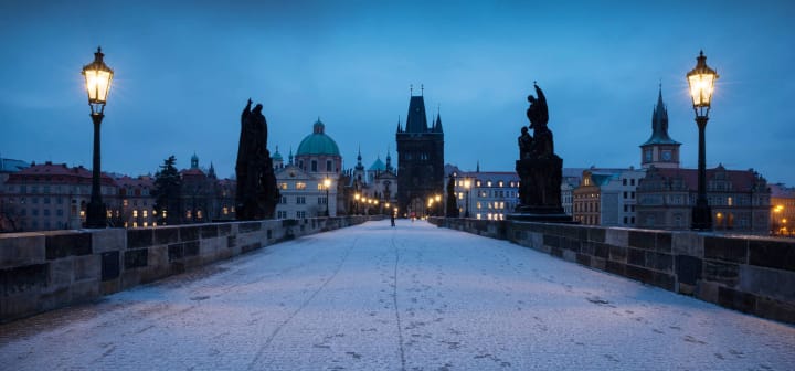 Take a walk along the lovely illuminated Charles Bridge decorated with lights and decorated statues.