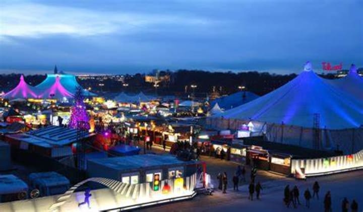 Tollwood Cultural Festival has designers and contemporary craftspeople displaying their art, jewelry, fashion, décor, and other creations. You can hear traditional Christmas carols.