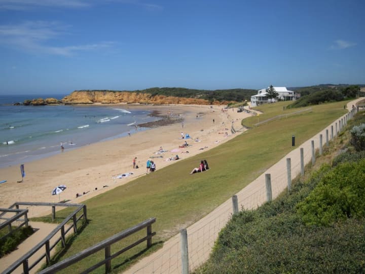 Visitors enjoy surf beaches among the world-famous Bells Beach.
