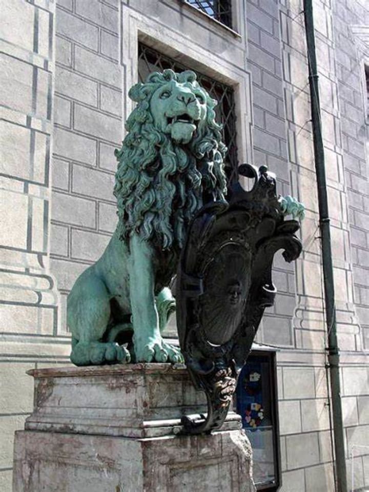 Four giant bronze lion statues guard the entrance to the palace on Residenzstrasse, supported by pedestals festooned with a half-human, half-animal face. Note the creatures' remarkably shiny noses. If you wait a moment, you'll see the reason for the sheen: scores of people walk by and casually rub one or all four noses. It's supposed to bring wealth and good luck.