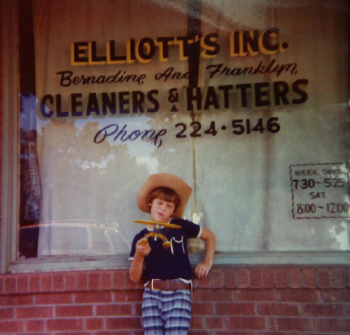 I had become just a summer visitor to my hometown before I began kicking gravel against the back brick of “Elliott’s Cleaners” and stood cooling my bare feet on the smooth linoleum floor in the front parlor, amid steam and freshly ironed clothes. And when my grandparent’s workday was over, I’d play on the small carnival rides at Shannon Springs, once an artesian well along the Chisholm Trail, where cattleman watered their stock as they drove them from Texas farms to Kansas railheads.