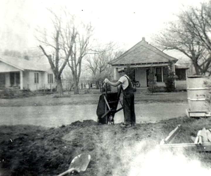 The town changed little between my father’s birth and mine. Kids still laid pennies on the tracks passing by South Sixteenth Street and West Colorado Avenue. And when the big freights rumbled through during the stormy spring, the more inexperienced residents rushed down to the basement. Sometimes it was hard to tell the difference between the Santa Fe on the tracks and the tornados in the fields.