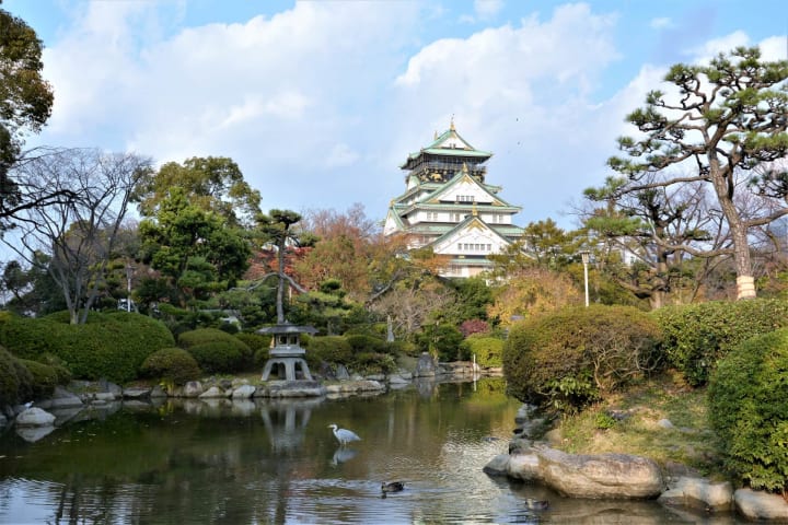 The Nishinomaru Garden encompasses the former “western citadel”. This is a lawn garden with 600 cherry trees, a tea house, the former Osaka Guest House, and great views of the castle tower. The garden has an admission fee.