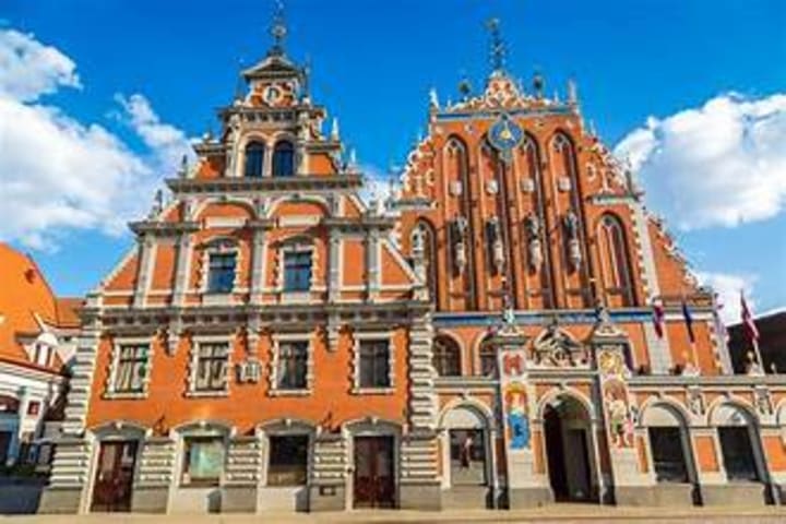 There is the impressive House of Blackheads with Gothic architecture. It was originally built in the 14th century for the Brotherhood of the Blackheads, a guild for unmarried merchants. The building was reconstructed in the 1990s.