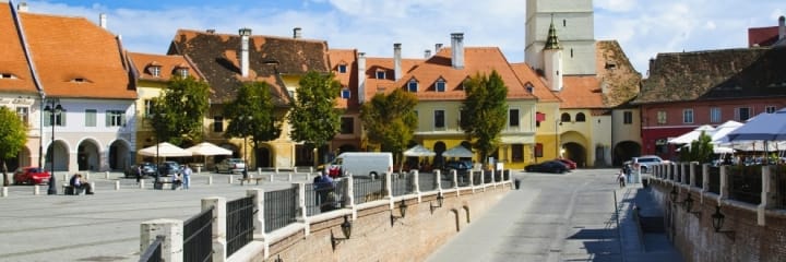 This square is located in the heart of Transylvania. It is surrounded by pastel-colored, Baroque buildings and cobblestone streets. This is a UNESCO listed square.
