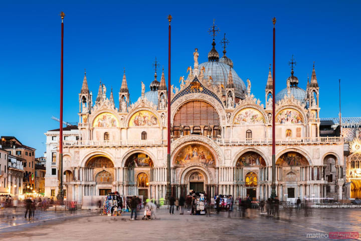 St. Mark's Basilica has impressive domes, marble facades, and ornate mosaics.