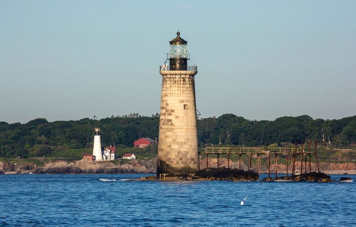 Beyond Ram Island and only visible on a clear day is Halfway Rock Light Station from 1871.