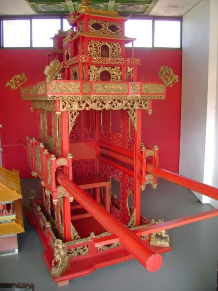 This is the picture of the Empress's carrier. A neat way to be transported. Everyone can see Royalty coming.