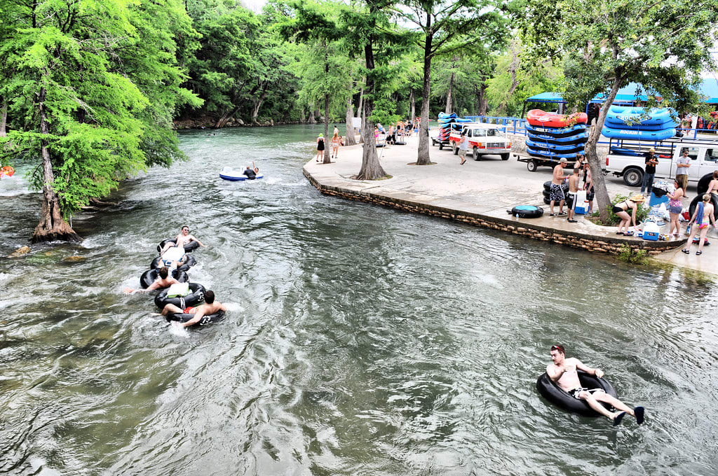 During the summertime the most popular thing to do is tubing down the Guadalupe River. (See picture above)