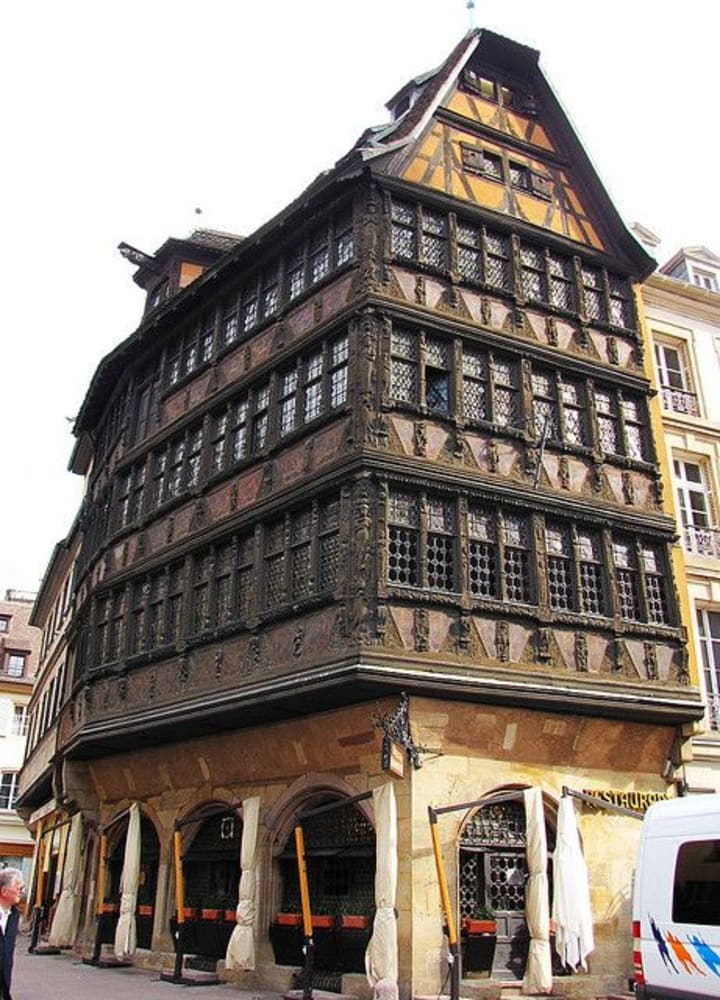 The interesting Kammerzell House was named after a grocer, who lived here in the 19th century. It was Martin Braun, a cheese merchant who acquired the house in 1571 and gave it, its present appearance. He kept the stone ground floor dating back to 1467 and rebuilt the rest of the house with three corbelled-out stories and three floors in the loft in 1589. The rich decorations on the facade are both sacred and secular and were inspired by the Bible, Greek and Roman Antiquity, and the Middle Ages. Inside there are remarkable frescoes that were painted by Leo Schnug in around 1905.