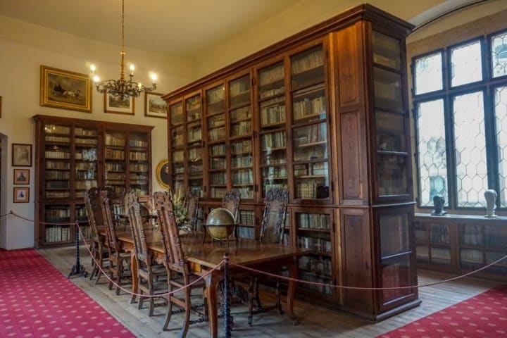 The castle library contains 52,000 books. You can get great views from the Great Tower. There is also a ghostly torture chamber. During the first week of August, the castle hosts a traditional craft fair and woodcarvers festival in the castle courtyard.