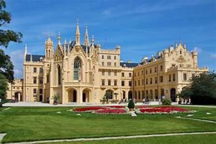 This is a majestic castle located in the village of Lednice. In the background is the largest park in the Czech Republic. Lednice Castle is a UNESCO World Heritage Site. It is one of the most beautiful castle complexes built in the English neo-Gothic style. The castle is surrounded by gardens and parkland. The grounds include a greenhouse, a minaret, and various ponds and walking paths.
