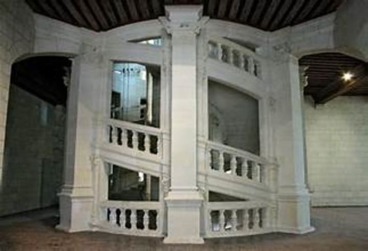 One of the architectural highlights is the spectacular open double-spiral staircase that is the centerpiece of the château. The two spirals ascend the three floors without ever meeting, illuminated from above by a sort of light house at the highest point of the château.