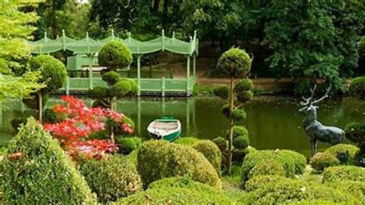 The castle is surrounded by lovely garden with lakes, canals, wooded areas, and manicured lawns. Among the highlight are an Anglo-Chinese garden with a hamlet of houses and a romantic English garden.