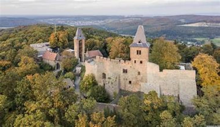 Eltz Castle sits perched on a rocky crag in the heart of the Eltz Forest, a protected nature reserve by the Moselle between Koblenz and Tier, Germany. It is still owned by a branch of House of Eltz who have lived there since the 12th century. The Rübenach and Rodendorf family wings in the castle are open to the public. Public visits are seasonal: from April to November. Exhibits include the treasury, which contains gold, silver and porcelain artifacts, and the armory which hosts historic weapons and suits of armor.