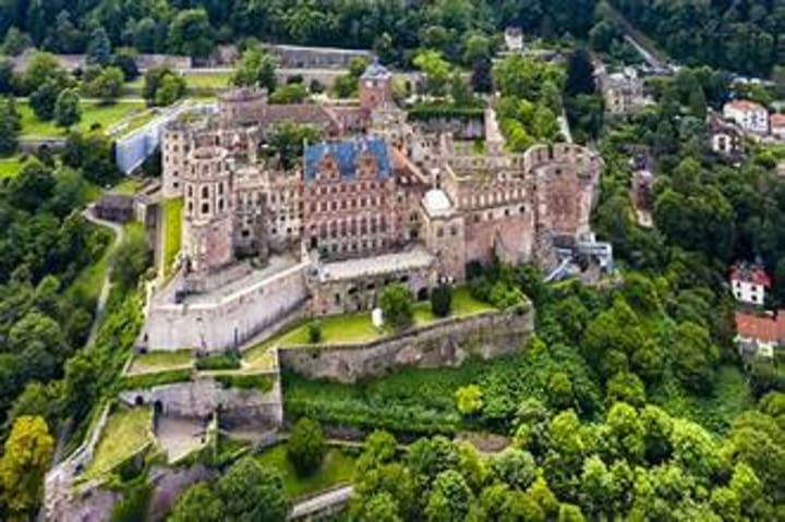 Heidelberg Castle is a sandstone castle. It is located in the deep green forests of Neckar Valley overlooking the Old Town of Heidelberg. Throughout history it has been one of the grandest castles of the Renaissance. It served as a residence for the Electors Palatine and played a significant role in the region's history. It is accessible by a funicular railway or a steep hike from the city center. The castle hosts various cultural events, including concerts and festivals, particularly during the summer months.