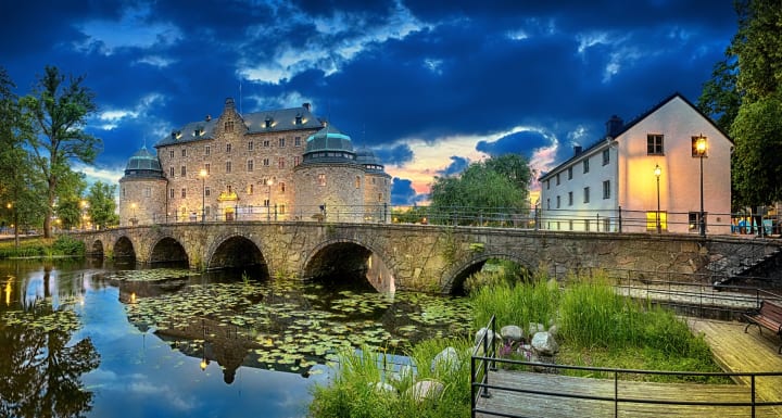 Orebo Castle is located on the islet of River Svartan and has hosted important meetings and parliaments throughout history. It is a Medieval castle fortifications and some of the rooms are used as classrooms for pupils from Karolinska Gymnasiet.
