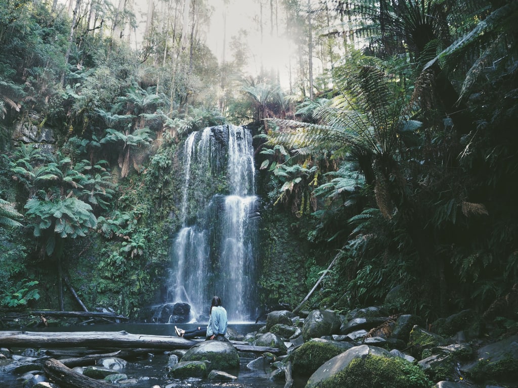 I had always loved waterfalls and after reading about some of the spectacular falls within the Victorian Otway National Park I set out to find some. I wasn’t entirely sure what I was walking to when I pulled up to a small car park with one winding muddy path leading to a downward spiral of steps made only of dirt and wood. It had been raining heavily, the ground was slippery, and I found myself falling into the mud more times than I could count. It got colder with each step down and the air was changing too. It was fresh and crisp but somehow harder for my lungs to take in. My legs were burning, and I thought about turning around many times.