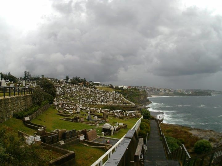 Another day dawned, grey and miserable but still we packed our togs and borrowing umbrellas from the hotel we set off, past the bronze of the soldier and the lifesaver, comrades in arms forevermore. Up the cliffside we strolled, stopping to imagine the days of the jetty and the Coogee baths, pausing silently to remember the lost at the Bali Bombing memorial. On and on we strolled, stopping at Gordon’s Bay, where a young man pulled a dinghy up onto the cliff walls, to join the others that seemed to be looking forlornly at the ocean. The grey day did not abate, but we managed to make it to Clovelly with her concrete pool and strip of beach before the rain got too much. The Roosters banners along the strip were limp in the air, a little like the club’s finals hopes that year. Over a warming coffee we spoke about our plans for the day and as the tech nerd in the group, I checked the weather app. It suggested that we would be able to finish our walk and as the rain eased we put up our umbrellas and strolled on; out to the cliffs by Clovelly Bowling Club where we could view the full majesty of the Pacific.