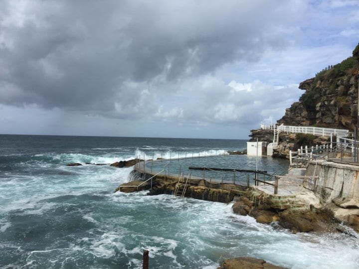 As the grey day cleared and the sun grew stronger in the sky we ascended our final set of stairs; from the clifftop, Icebergs Pool and that beach stretched before us. The white waves splashed over the pool walls and rippled through the lanes; in heavy surf, swimming too close to the edge of the pool could mean that we would be swept away, into the depths of the rips at the southern end of Bondi, taken by the surf to meet our maker or say hello to New Zealand.
